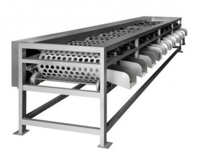 本設(shè)備是全不銹鋼果蔬分選機(jī)械,是由上果輸送機(jī)和滾杠式分選機(jī)組成;上果輸送機(jī)通過滾杠自動旋轉(zhuǎn)來達(dá)到均勻上料,滾杠式分級機(jī)根據(jù)果蔬直徑大小來分選;